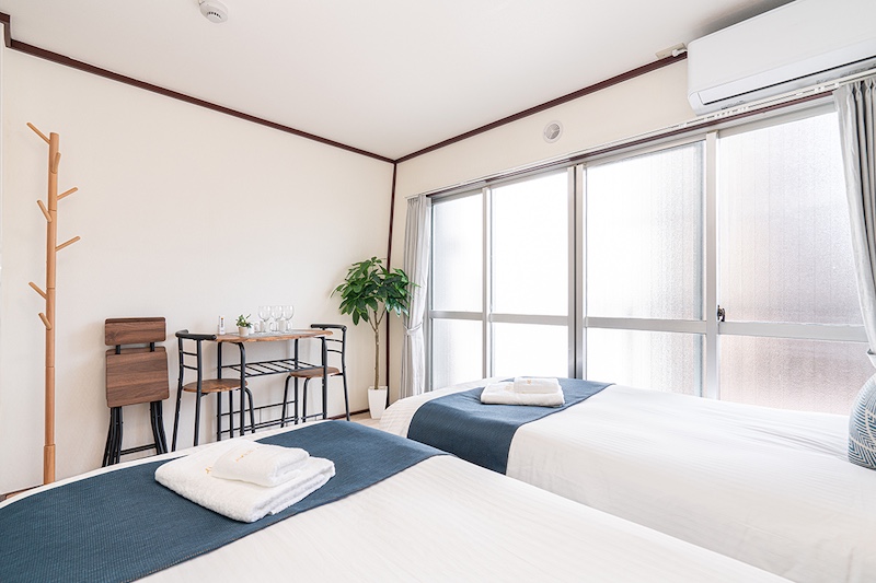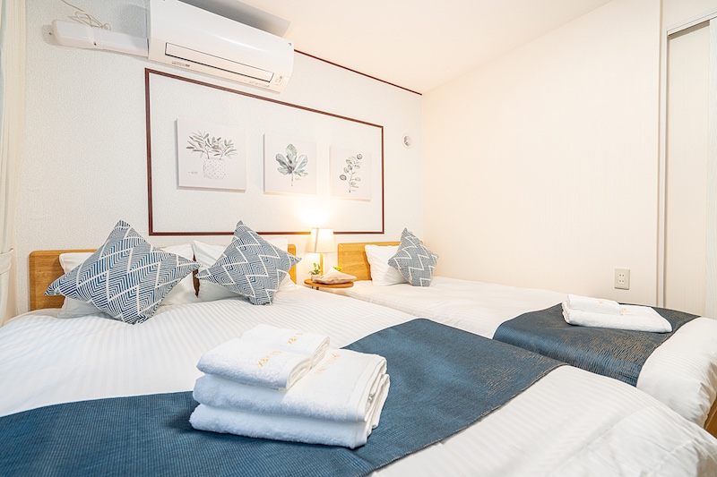 当民泊では、快適で便利な滞在を提供するために、さまざまな施設とアメニティを整えています。客室には、エアコン、テレビ、高速Wi-Fiが完備されており、リラックスした時間をお過ごしいただけます。また、キッチンには冷蔵庫、電子レンジ、調理器具が揃っており、自炊を楽しむことも可能です。長期滞在のお客様にも対応できるよう、各客室には洗濯機をご用意しております。さらに、アメニティとして、タオル、シャンプー、コンディショナー、ボディーソープ、ドライヤーなどをご用意しており、快適な滞在をサポートします。